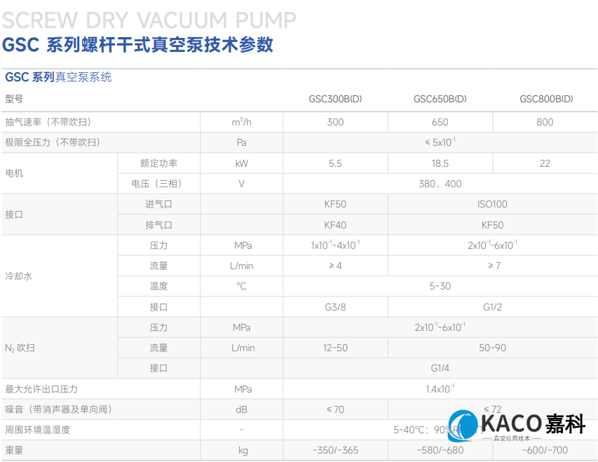 鮑斯GSC300B螺桿干泵的主要參數(shù)包括: